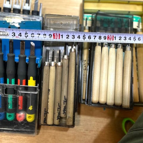 Japanese Vintage Tools Set: "Yoshinobu" Leather Knife, Scrapers, & Chisels (L...
