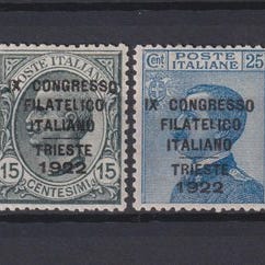 Italien 1922 - Congresso Filatelico, fuld serie med 4 hele og certificerede v...
