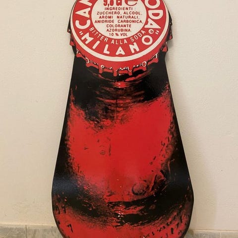 Genfortolket popkultur-ikon, denne metalbeholder er helt håndmalet og foræret en finish med blank, glitterende lak, der giver unikke reflekser og en stærk visuel tilstedeværelse.