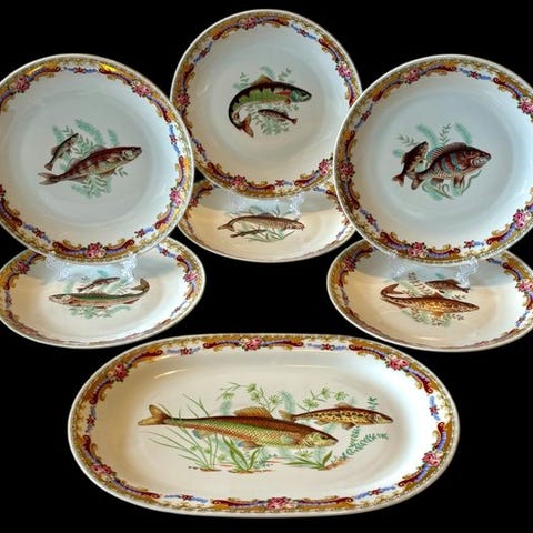 Superb 5 meget store præsentationstallerkener i Limoges-porcelæn hos Philippe Deshoulieres