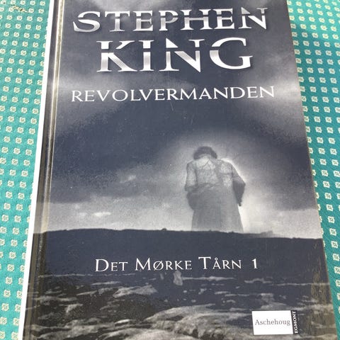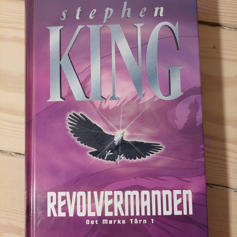 Stephen King Revolvermanden bog, del af serien Det Mørke Tårn 1. Bogens omslag er lilla med illustration af en fugl i flugt. Sender ikke for køb under 200 kr.