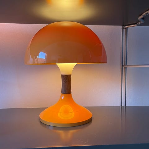 Bent Karlby (f.1912-1998) Klokkeblomst havelampe for Ask belysning. Sjælden set have lampe af Bent Karlby. Lampen er produceret af A. Schrøder Kemi (ASK) Mål: ca. 90x25 cm. Stand: Der mangler en top del, ledningen er mør, ellers se billeder.