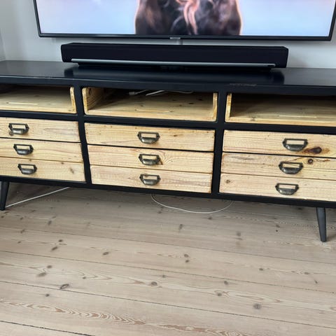 Da vi ikke længere har plads. Den har en skade på skuffen og på den ene side helt ind til væggen (Uden indhold)