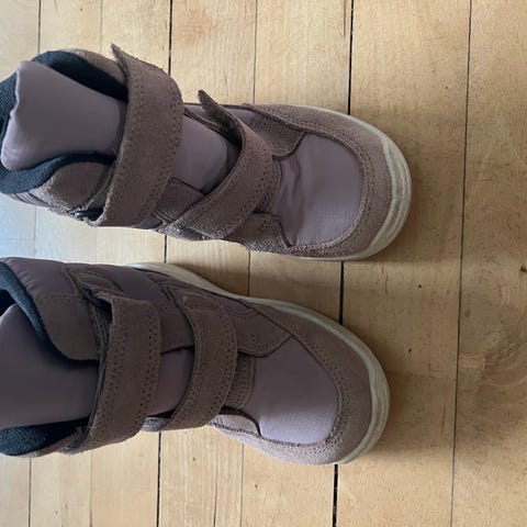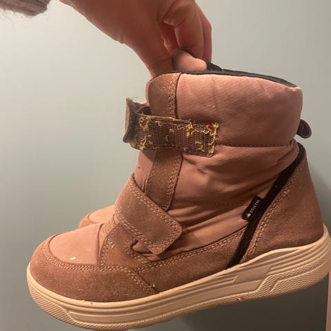 ECCO børnestøvler til pige i størrelse 26. Støvlerne har en varm foring, der giver ekstra isolering, og en justerbar velcrolukning for bedre pasform. Sålen er designet til at give godt greb og stabilitet. Farven er en kombination af rosa og beige nuancer.