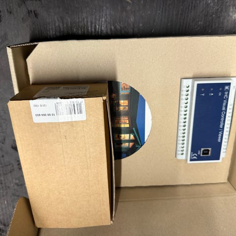 IHC visual controller med ind- og output + tryk og wireless dimmer. Styring udskiftet julen 2025. Alt virkede som det skulle ved demontering. Dog bør batterier i tryk skiftes.