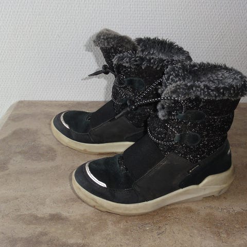 Superfit børn sko i størrelse 31 til piger. Skoene er sorte med snørelukning og har blødt og fuldt foret for ekstra varme og komfort. Sålen har et stjernemønster for bedre greb.