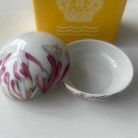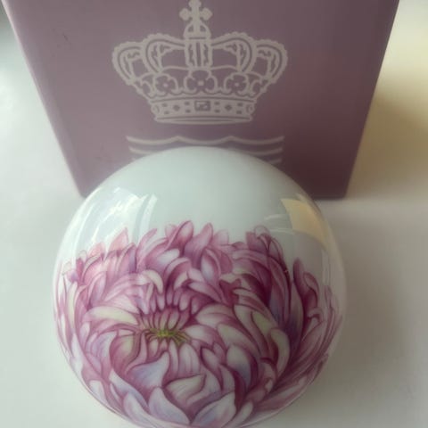 Rigtig flot bonbonniere fra Royal Copenhagens forårskollektion med krysantemum. Som ny. I original emballage. Æsken har lidt mærker.