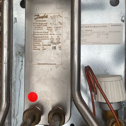 Akva Lux II vandvarmeren indeholder en loddet, højeffektiv Danfoss pladevarmeveksler for varmtvandsproduktion, en brugsvandsregulator Danfoss PTC2+P med integreret trykdifferens og energisparefunktion, samt Danfoss FJVR til styring af by-pass/cirkulationstemperaturen.