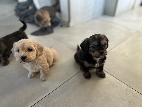 Efter de smukkeste og kærligste forældre. Hvalpene er vant til børn og andre hunde. De er renligheds trænet og vant til lyde i dagligdagen som radio, vaskemaskine, støvsuger osv.. de har prøvet at køre med i bil