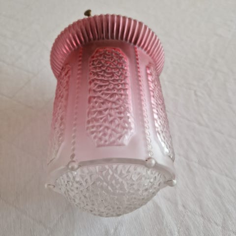 Retro lampe i messing og glas. Fejler intet, med undtagelse af lidt rust på kæden (se billeder)