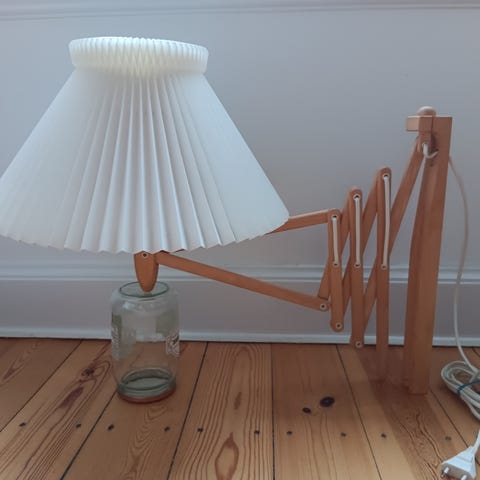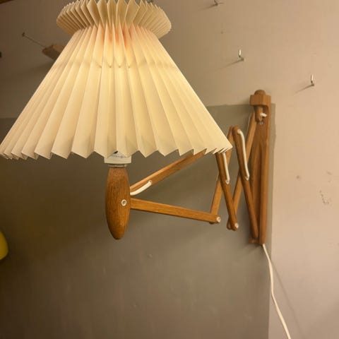 Le Klint Erik Hansen. sakselampe i træ med hvid lampeskærm. Lampen er vægmonteret med udtræksarm i træ, der kan justeres i længden. Lampeskærmen er foldet i klassisk Le Klint-design. Passer til forskellige rum og belysningsbehov. (Kan ikke sendes) kun afhentning,og betaling kontant , kan eventuelt hentes i Middelfart,vi er under flytning