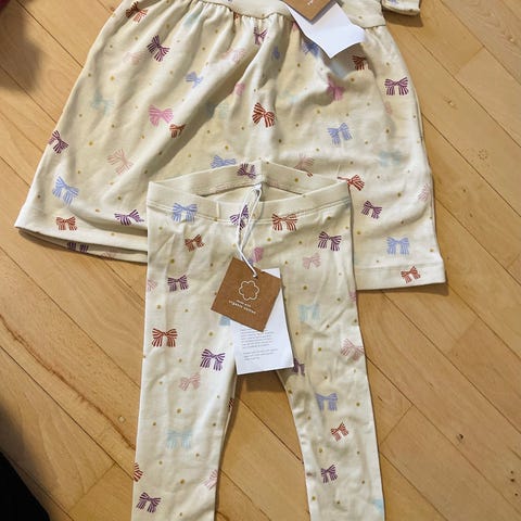 Name it Lyserød Bomuld Pige Tøj Sæt i størrelse 68 bukser str 62. Sættet består af en langærmet kjole og matchende leggings med hjerteprint. Fremstillet i bomuld, egnet til piger i denne størrelse.
