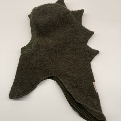 HUTTEliHUT uld elefanthue i beige til børn, størrelse 50, unisex. Elefanthuen er fremstillet i uld, hvilket giver varme og komfort. Designet dækker hoved og hals, og har to dekorative pomponer på toppen.