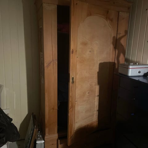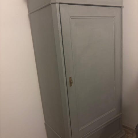 Sødt gammelt skab med hylder og bøjlestang. God til fx børnetøj.