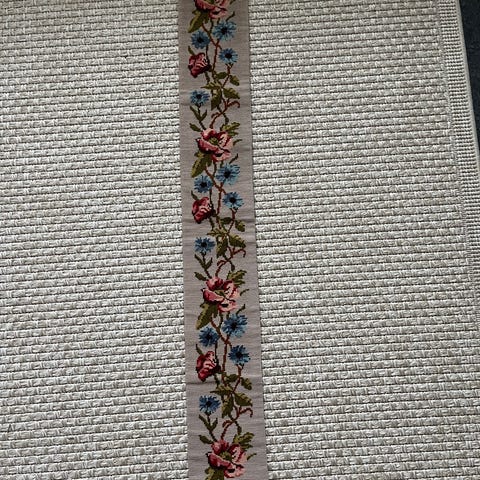 Broderet klokkestreng med blomster (str. 19x122 cm)og gammelt beslag
