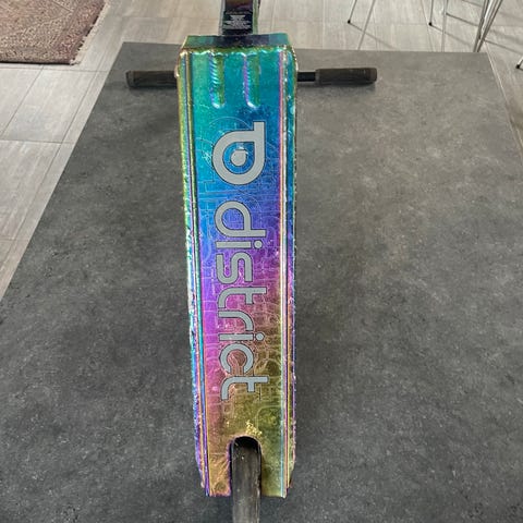 District løbehjul i blå og sølv farve. Fremstillet med et robust stel og hjul