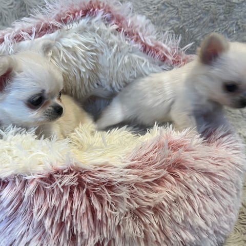 Vi er 2 skønne uldne hvalpe, som er klar til at komme hjem til vores nye familie-hvor vi kan lege,kæle og give varme i vinterkulden.
