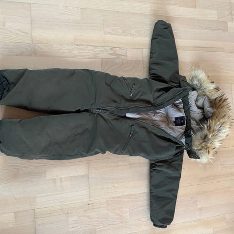 Flyverdragten er i pæn brugt stand, men har slid/et lille hul på det ene ben (se billede). Dette er taget med i prisen. Ellers hel, funktionel og med masser af brug tilbage.