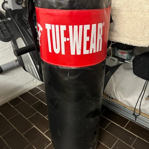 Fighter boksesæk, som mangler fyld med ophæng. Kraftig sæk som kan blive dejlig tung. Fighter boksehandsker i størrelse 16 OZ. Fighter hjelm, som nærmest er ubrugt. Der medfølger et sæt nye tandbeskytter en trænings monjarco og en sparkeklap. Mine dage som thaibokser, er desværre forbi pga et dårligt håndled.