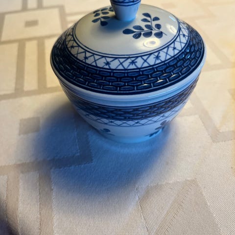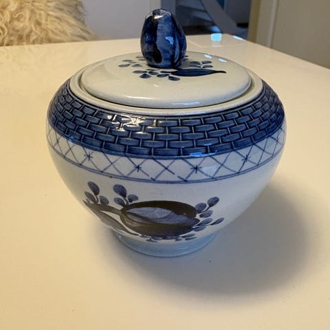 Royal Copenhagen/Aluminia Tranquebar sukkerskål med låg, modelnummer 953. Afhent i Køge eller sendes. Tlf 40500544