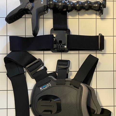 GoPro headstrap sælges som nærmest helt ny. Produktet består af en justerbar rem med monteringsbeslag, der kan bruges til at fastgøre et GoPro eller andet action kamera til kroppen eller udstyr for handsfree optagelse. Materialet er elastisk og designet til at give stabilitet under brug.
