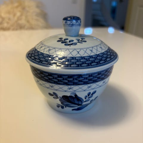 Royal Copenhagen/Aluminia Tranquebar sukkerskål med låg. Model 11/1132. Afhent i Køge eller sendes. Tlf 40500544