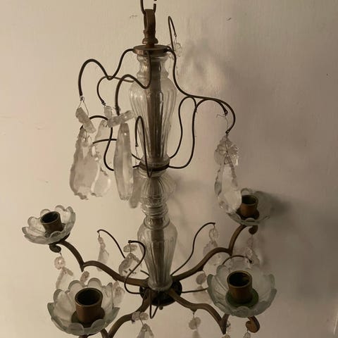 Flot lampe med elpære i midten, og plads til 4 fyrfadslys omkring den