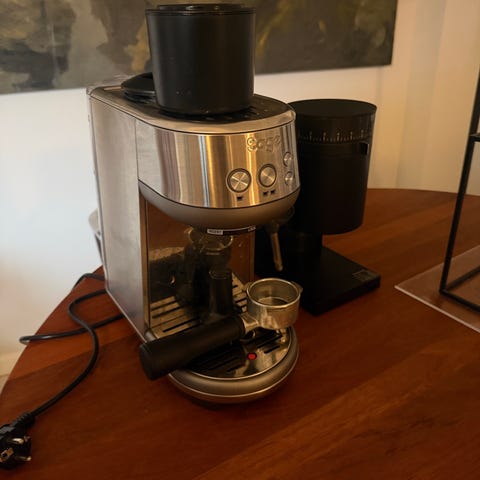 Sælger et komplet espresso sæt bestående af kværn og espressomaskine. Begge er omkring et år gamle og kun brugt en håndfuld gange. Kvittering haves på begge maskiner.