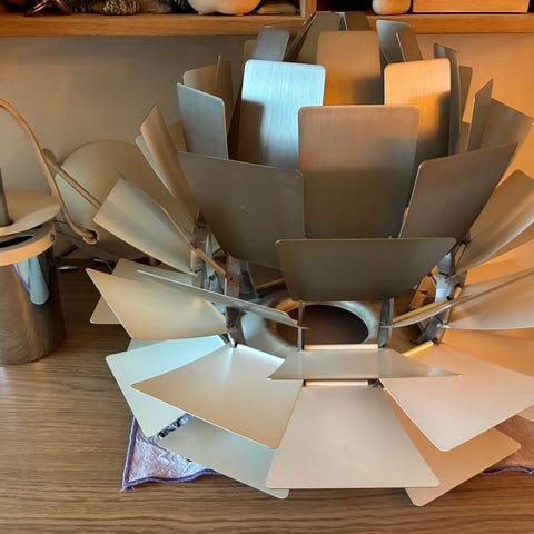 Louis Poulsen PH Artichoke loftslampe designet af Poul Henningsen. Lampen har et karakteristisk skærmdesign bestående af overlappende blade, der sikrer blændfri belysning. Egnet til ophæng i lofter og anvendelig i forskellige rum til dekorativ og funktionel belysning.