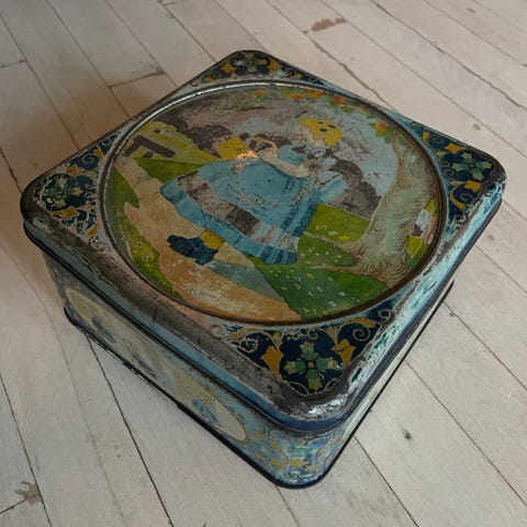 Retro opbevaringsdåse til gryn og ris blå med blomster