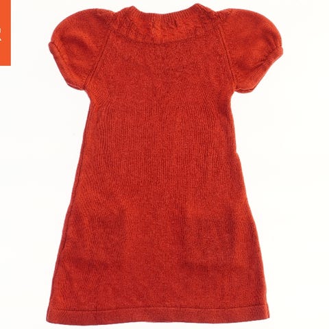 En rød langærmet kjole med rund halsudskæring. Den har et print af en enhjørning med teksten 'FOREVER MAGICAL' på brystet. Kjolen har en søm detalje omkring taljen, hvilket giver et let skørt nederst.