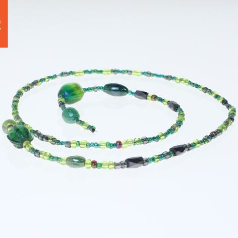 En stilfuld ring lavet af metal med en rund glasperle. Glasperlen har en lyserød base med blomsterdetaljer i lilla og hvide farver. Ringen måler 51 mm i størrelse og har en enkel, elegant form. Den farvede glasperle tilføjer en unik touch til smykket, hvilket gør det ideelt til hverdag eller særlige lejligheder.