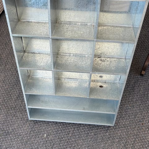 Hvid vægreol som kan bruges til vaser, kopper, billeder mm. Lidt som en mega sættekasse. Lidt vintage.