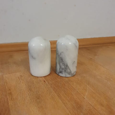 Salt- og pebersæt i marmor og metal (str. 13x5 cm)