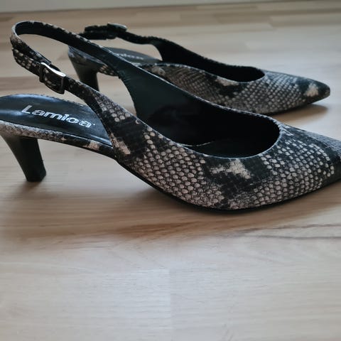 Hvid slangeskinds hæl sko (str. 36 )
