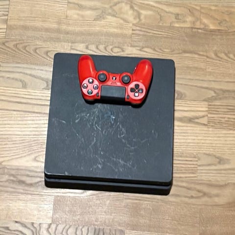 Playstation 4 spillekonsol med tilhørende controller. Virker upåklageligt og har været renset jævnligt.