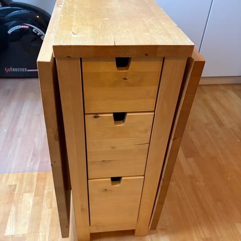 Smart og praktisk klapbord der monteres på væggen så den næsten ikke fylder noget, når den ikke er i brug.