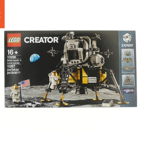 Denne LEGO Creator sæt er en detaljeret udgave af NASA Apollo 11 Lunar Lander. Sættet indeholder 1087 dele og er beregnet til 16 år og opefter. Det er en del af LEGO Expert serien og fejrer en historisk begivenhed med en realistisk model af månelandingsfartøjet. Æsken viser LEGO modellen på måneoverfladen, komplet med astronautfigurer og det amerikanske flag.