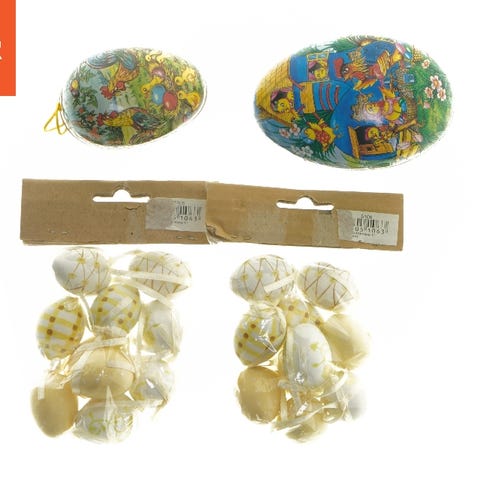 Sættet består af to dekorative porcelænsæg. Det større æg måler 14,5 cm, og det mindre æg måler 10,5 cm. Begge æg har låg og er dekoreret med farverige mønstre, inklusive blomster og kyllinger. Motiverne inkluderer påskeliljer og krokus, sammen med små kyllinger og æg på overfladen.