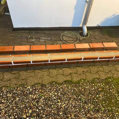 Brugt Leca overligger fra over et vindue.