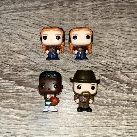 Tre Funko Pop figurer: to fra Harry Potter (Harry Potter og Albus Dumbledore) serien og Andy fra Parks and Recreation. 20kr/stk