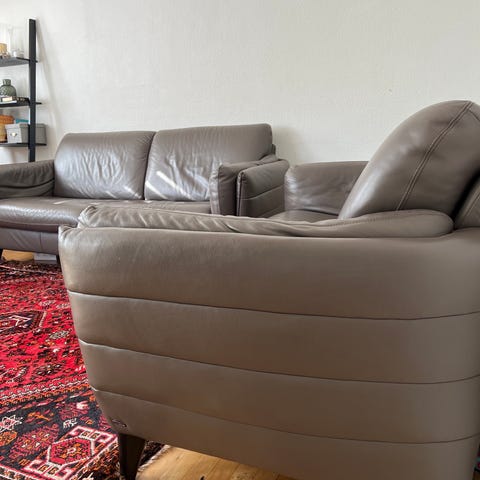 Natuzzi sofaen fejler intet. Man sidder fantastisk i lædersofaen. Nypris var 18.800 kroner.