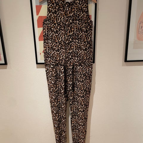 Sort, rummelig jumpsuit/ heldragt polyester. Lange ærmer, gennemgående lynlås og hætte. Rigtig dejlig til de kolde dage. Størrelse s/m..... jeg mener, den er medium.