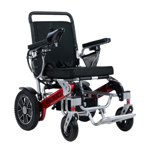 Blimo elite XL sammenklappelig el kørestol med 2 motorer på 250w hver kører fint med godt stort batteri og elektronisk joystick den er godkendt til fly og bus og er meget manøvre dygtig den kan komme til næsten overalt men er samtidig solid og velbygget den vejer ca 25 kg og koster fra ny ca 19000 kr.men vi sælger den incl.oplader for 5000 kr.