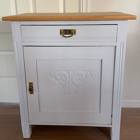 Fint vintage skab med marmorplade. Slebet og malet. Min hobby.