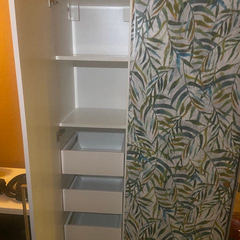 Skabet kan afhentes på Frederiksberg og skal selv bæres ned. Der er elevator men er i tvivl om den kan være der i.