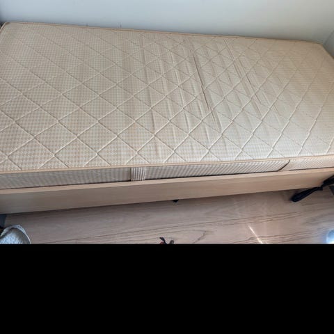 Kvalitets seng fra May Flower. Bemærk at sengebunden IKKE er de sædvandlige træ lamelbund men en god metal bund, Hertil en tyk god madras. En virkelig god comfort med en flot sengeramme i bøg. Og naturligvis er det en elevationsseng, motor til seng må du selv købe. Mål 90 X 200, H 52