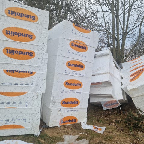 Sundolitt isoleringsplader til facadeisolering. Pladerne er fremstillet af polystyren. Prisen er for alle pakker på billedet. En pakke koster normalt omkring 500.
