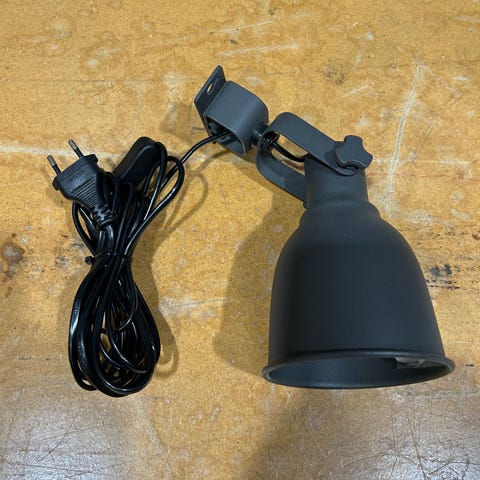 Væg-/klemspot, mørkegrå, skruer til opsætning medfølger. Afbryder på ledning.