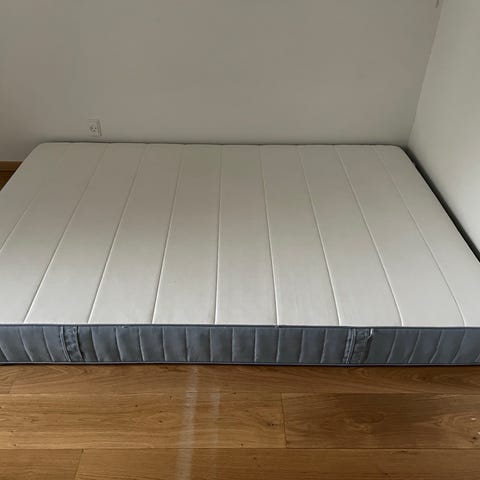 IKEA madras med lyse farver. Madras med quiltet overflade og bølgemønster. Passer til seng med standardmål 140x200. Der medfølger to lækre topmadrasser. Hurtig ekspedition prioriteres.